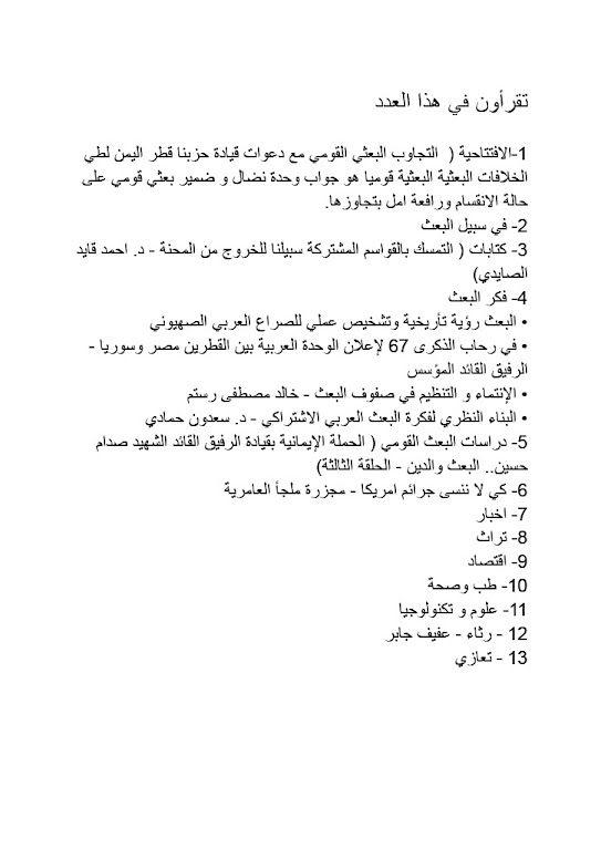 البعث القومي : حزب البعث العربي الاشتراكي القومي العدد العاشر فبراير 2025